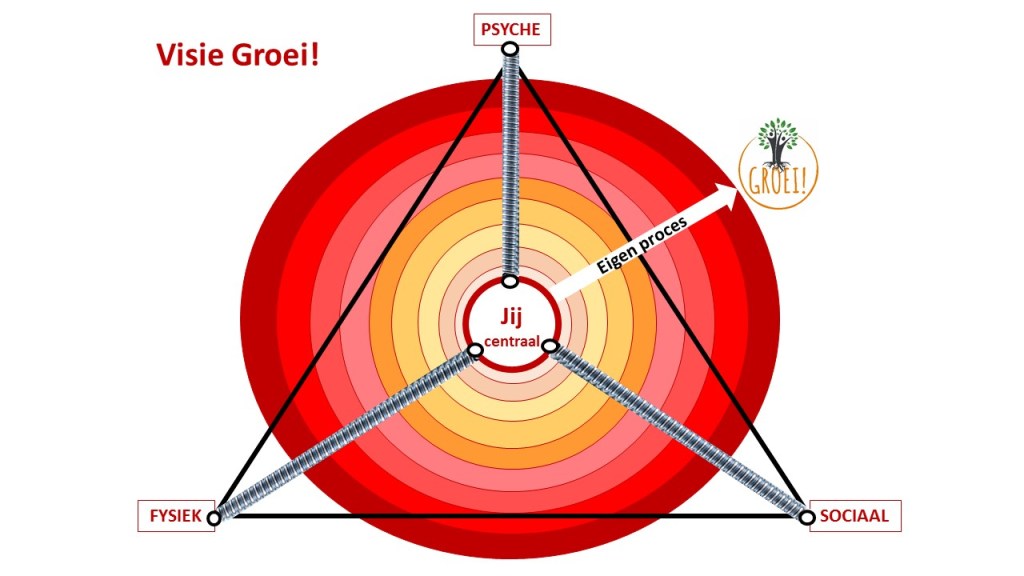 Via geloof in en het hanteren van eigen krachten van de cliënt, met zorg voor veiligheid en vertrouwen EN in verbinding met een netwerk begeleiden naar duurzaam welbevinden!